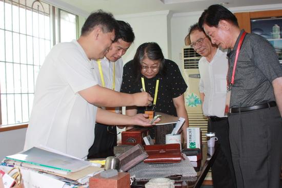 中国中小企业国际合作协会袁晋秘书长、中国中小企业国际合作协会企业信用与担保评价中心宋新力主任、《中国中小企业》杂志社林文滢付社长一行,来我文化部鉴定评估广东工作站调研。吕少民主任、温尚光总监、张优怀委员,分别向来宾介绍广东工作站的近期工作情况及“双百”(百名艺术家,百名企业家)活动准备情况。