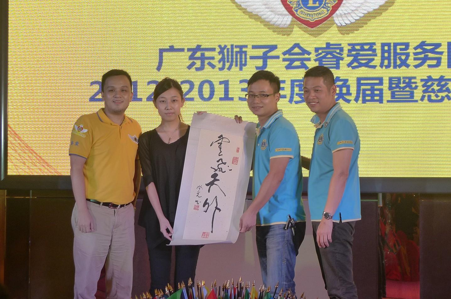 10月 13日,广东狮子会承办的“由我开始睿爱传承”慈善晚会在广州举办,并为“助残扶明”公益活动进行了现场拍卖活动,拍卖所得将全部用于“助残扶明”公益活动。其中,文化部艺术服务中心艺术品鉴定评估广东工作站为此次慈善义捐,捐献温尚光先生的一张书法作品,并进行了现场拍卖,将拍卖所得一万五千元善款全部捐出用于此次公益活动,为孩子们购置了盲文版现代汉语词典、儿童文学书籍、儿童音乐卡带等学习活动用品。