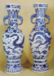 左:(元)青花龙纹象耳瓶,恭王府博物馆藏 右:现代器型臆造品