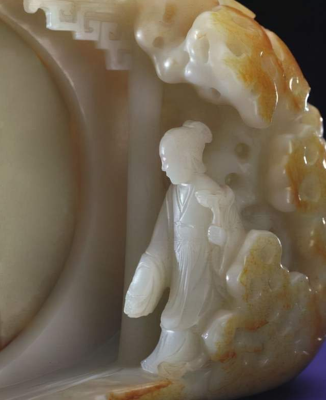 乾隆款带皮白玉《桐荫仕女图》山子(局部)