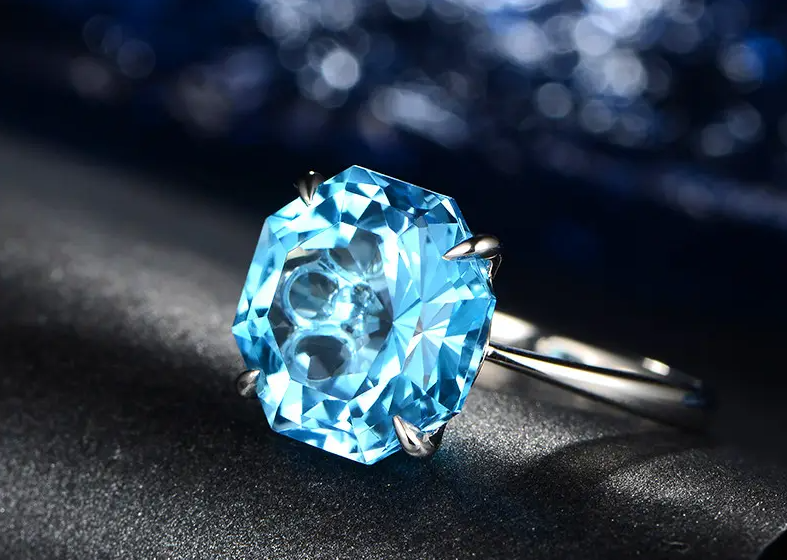 当下市场上最常见的是粉色与蓝色的托帕石,往往是通过热加工等手段改色而成的。