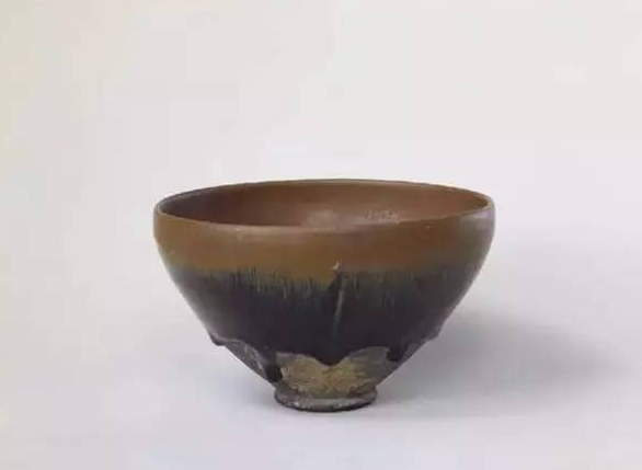 其一,因为使用石灰釉,这种釉在高温中容易流动,为了防止釉流到器底导致粘窑,工匠往往用蘸浸法施半釉。这便造成了常见的挂釉现象——釉层未覆盖全部外壁,底部像泪珠一样下悬,因此也被称为“釉泪”,这是建盏的艺术特色之一。