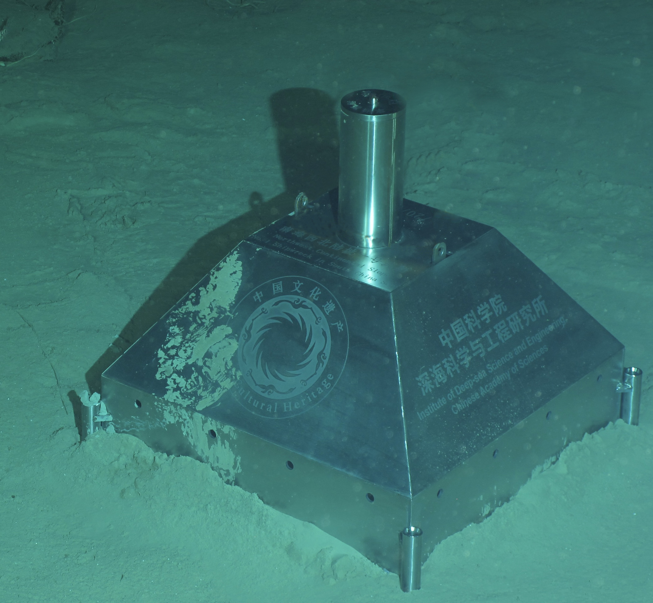 在南海西北陆坡一号沉船核心堆积区西南角,布放沉船水下永久测绘基点。