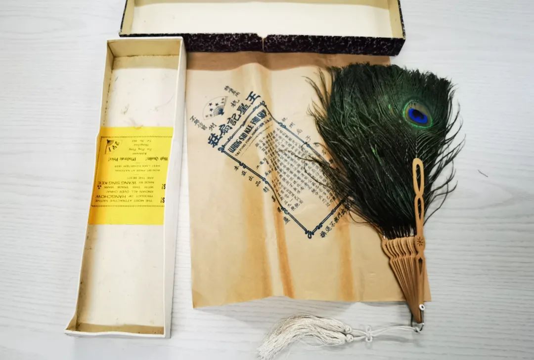 中华民国王星记孔雀毛制折扇(带包装)(杭州博物馆藏)