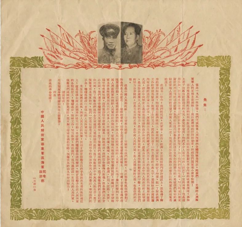 1951年中国人民解放军华东军区海军颁发贺年片(杭州博物馆藏)