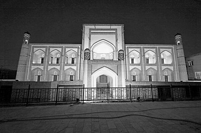 乌兹别克斯坦希瓦古城阿米尔·图拉经学院修复后夜景