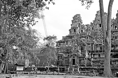 柬埔寨吴哥古迹茶胶寺修复工作现场