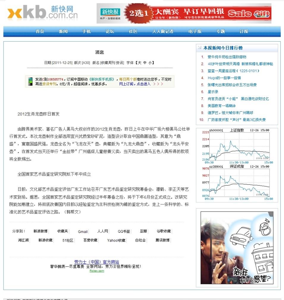 | 下一篇: 凤凰网:2011年工艺美术大师新作联展 - 2013.06.25 |