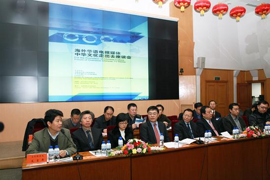 海外华语电视媒体中华文化走出去座谈会16日上午在北京举行。来自香港、澳门、台湾及海外的华语电视媒体负责人和代表与文化部各艺术院团、直属单位的代表一起,座谈中国对外文化交流工作,分享推动中外文化交流和向世界传播中华文化的有益经验和体会。