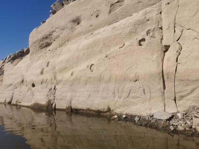 吕双利说,白河堡水库丰水期蓄水量达6000多万立方米,经过几个月的输水,目前水库中的水不足1000万立方米,大量输水让水位下降了16米,这也是摩崖石刻“重见天日”的直接原因。
