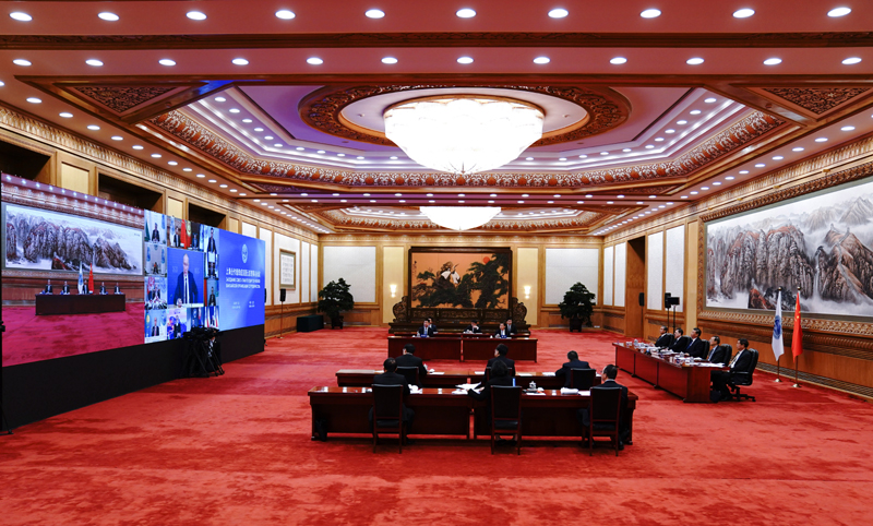 11月10日晚,国家主席习近平在北京以视频方式出席上海合作组织成员国元首理事会第二十次会议并发表重要讲话。新华社记者 丁林 摄