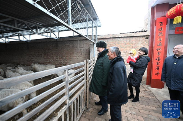 1月26日至27日,中共中央总书记、国家主席、中央军委主席习近平来到山西,看望慰问基层干部群众。这是26日下午,习近平在临汾市汾西县僧念镇段村蔡文明家察看羊圈。新华社记者 李学仁 摄
