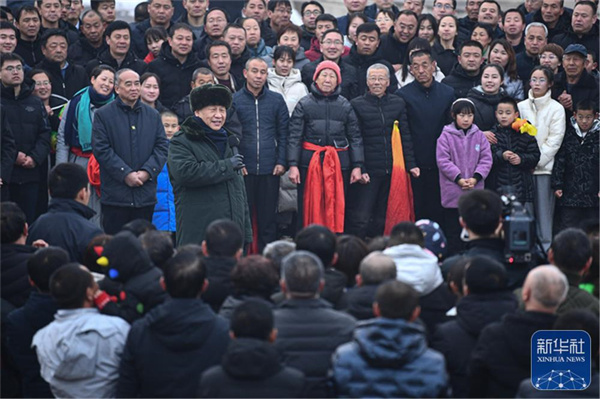 1月26日至27日,中共中央总书记、国家主席、中央军委主席习近平来到山西,看望慰问基层干部群众。这是26日下午,习近平在临汾市霍州市师庄乡冯南垣村考察时,同村民们亲切交流。新华社记者 谢环驰 摄