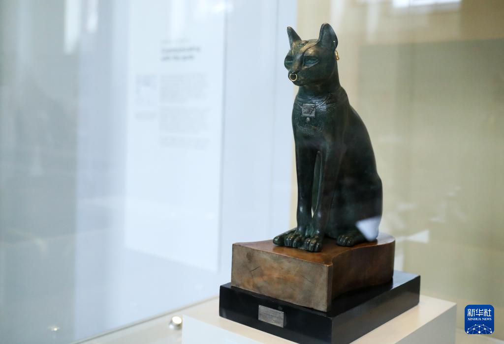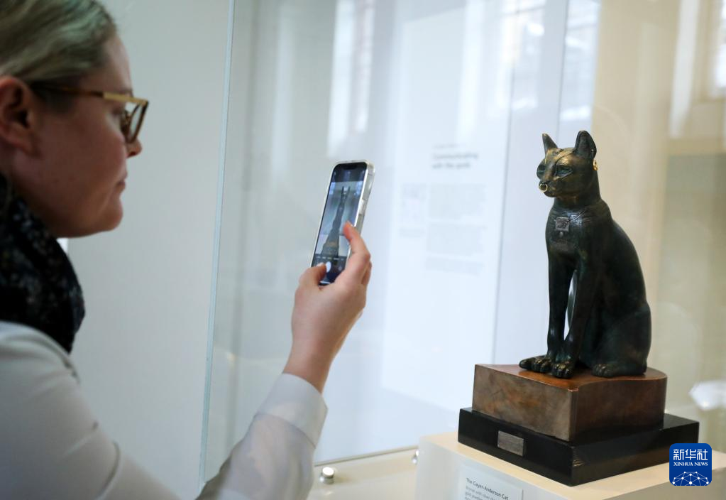 5月11日,在英国伦敦大英博物馆,参观者拍摄藏品“盖尔-安德森猫”。“盖尔-安德森猫”是一件古埃及青铜猫坐像,收藏家盖尔-安德森1939年将其捐赠给大英博物馆,从此雕像得名“盖尔-安德森猫”。 大英博物馆是英国最大的综合性博物馆,也是世界上最大的博物馆之一。藏品中不少“镇馆之宝”被设计成形式多样的文创产品,深受人们欢迎。