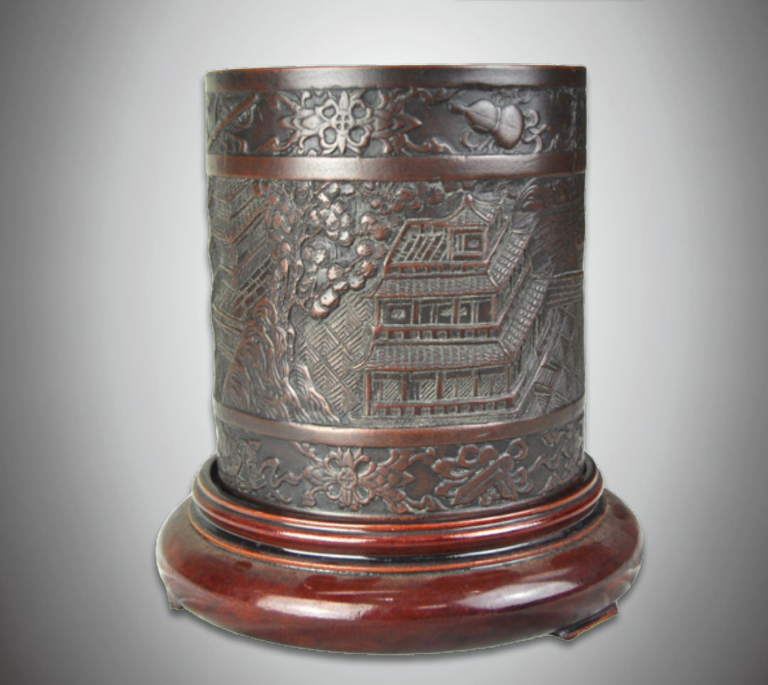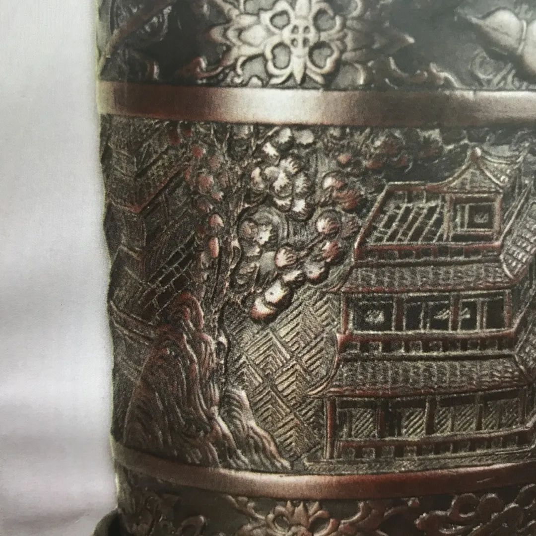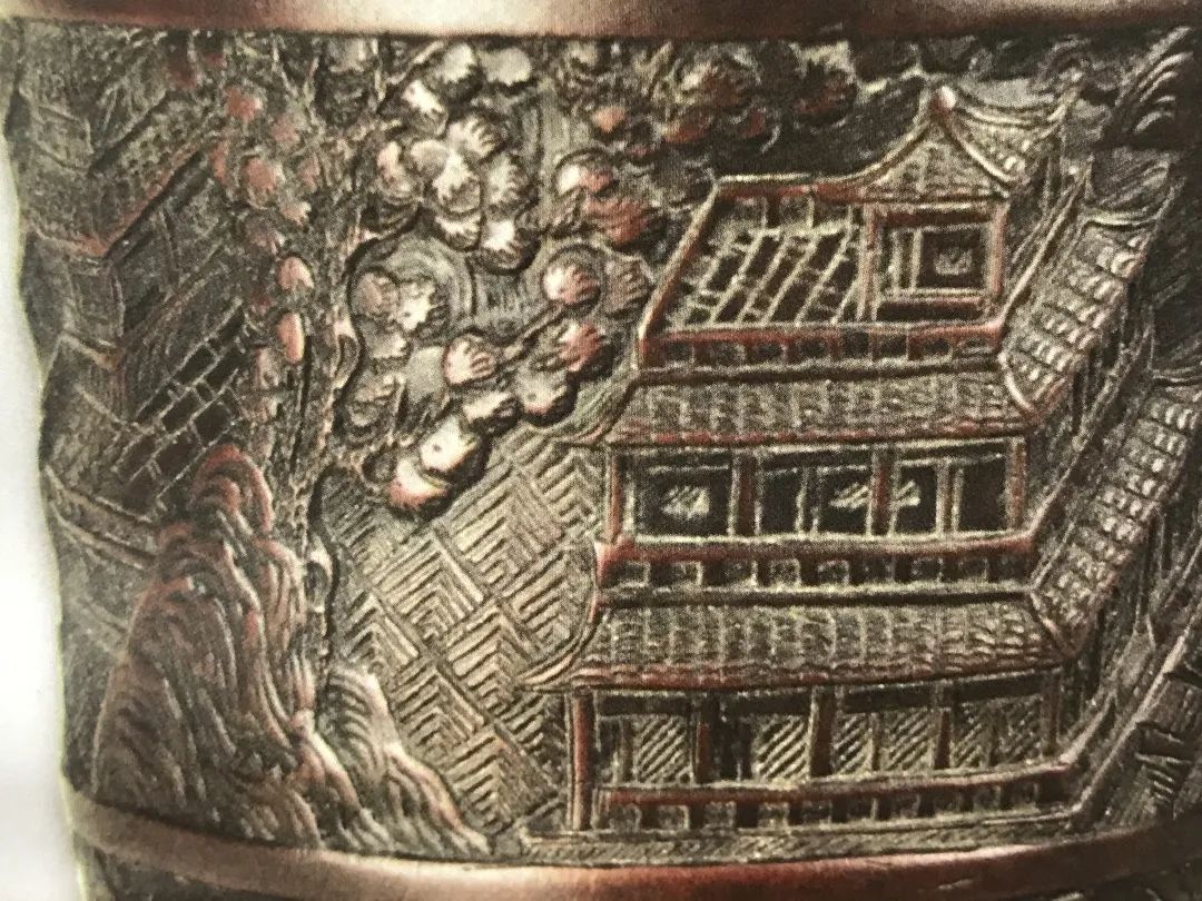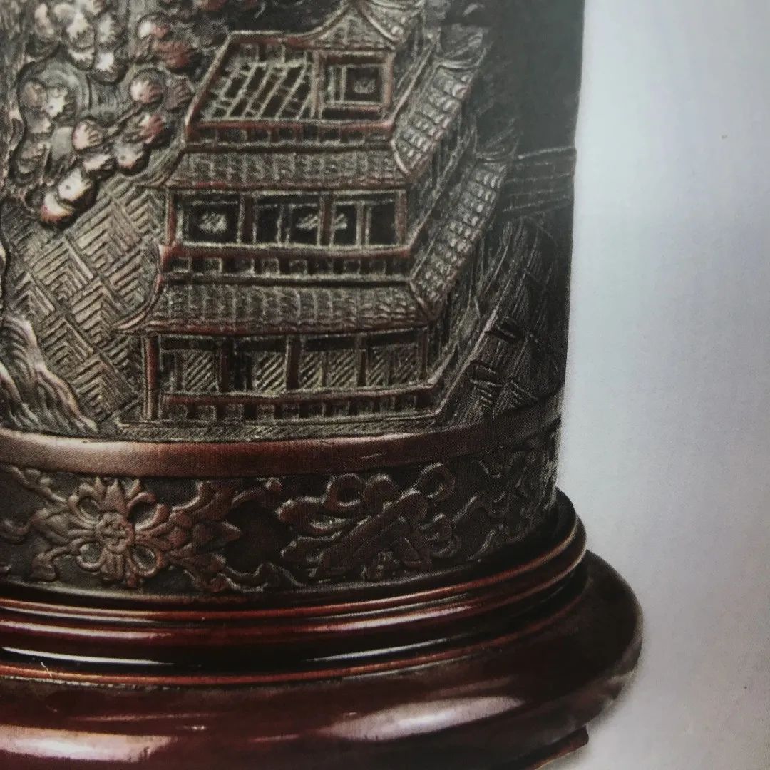 笔筒整体纹饰图案雕刻精细,包浆自然厚重,应是一件精品。
