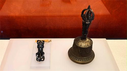 珍藏在承德博物馆中的铜铃、杵,是六世班禅为乾隆皇帝祝寿敬献的礼品之一。(总台央视记者马立飞拍摄)