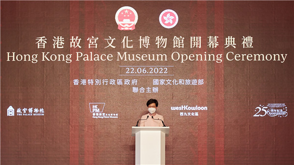 6月22日,香港故宫文化博物馆举行建成开馆仪式。香港特别行政区行政长官林郑月娥,文化和旅游部副部长、国家文物局局长李群,故宫博物院院长王旭东等出席并致辞。