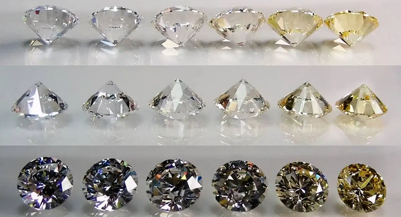 通过比色石进行比色、分级。处于透明无色的D、E、F等级的钻石最为珍贵。