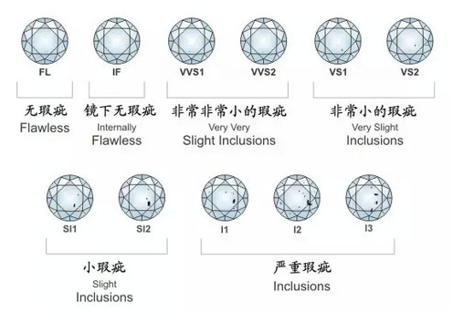 在10倍放大镜下,钻石具细小的内、外部特征,细分为VS1、VS2。