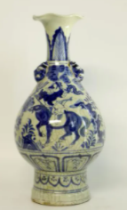 左:(元)青花人物故事玉壶春瓶,湖南省博物馆藏 右:现代工艺臆造品