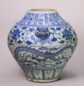 左:(元)青花龙纹象耳瓶,恭王府博物馆藏 右:现代器型臆造品