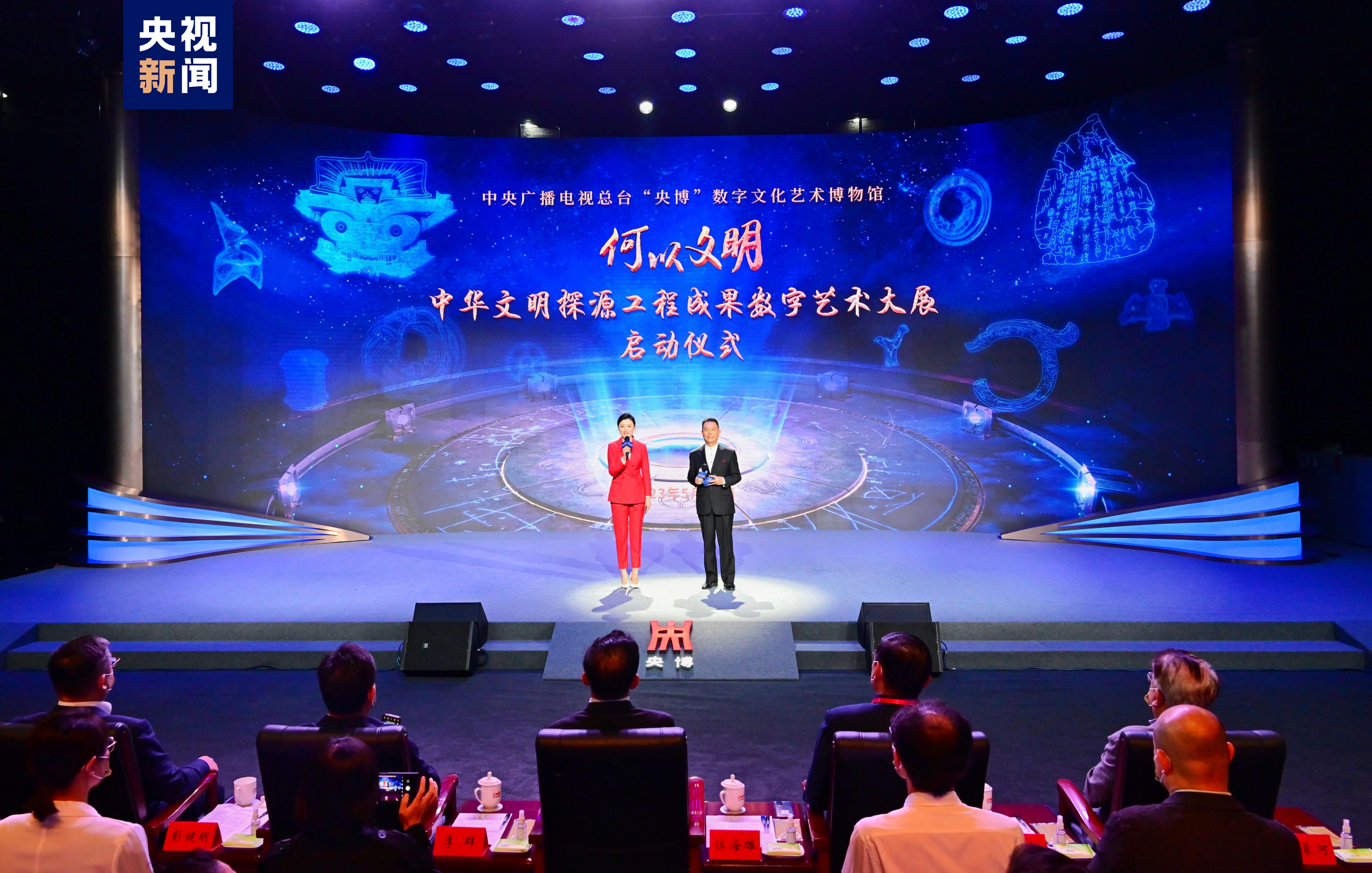 5月27日,中央广播电视总台“央博”数字文化艺术博物馆“何以文明——中华文明探源工程成果数字艺术大展”启动仪式在京举行。中宣部副部长、中央广播电视总台台长慎海雄,文化和旅游部副部长、国家文物局局长李群出席,并与嘉宾共同启动展览。
