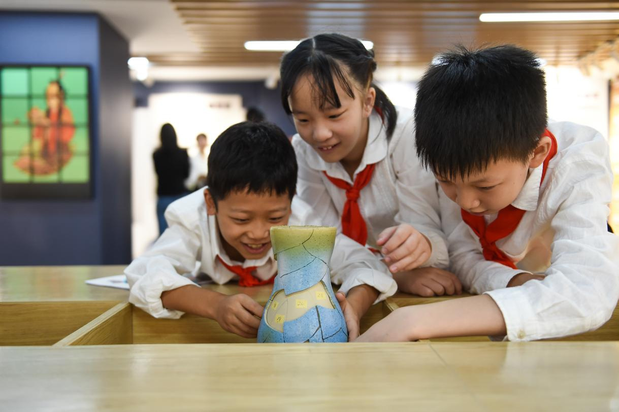 模拟文物修复课程也“圈粉”青少年。把支离破碎的陶片“修复”成完整的器物,看似容易,真正动起手来可真费脑筋。不仅要拼接得严丝合缝,还要在缺损处填补石膏等等,非常考验细心和耐心。学生旷清徽说:“课本里的历史有些冷冰冰的,动手体验和实地参观之后,我感受到历史其实是有温度的,需要我们传承下去。”