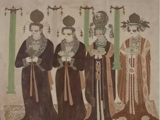 -Portrait of Female Donors, Mogao Cave 61, Five Dynasties, Copied by Wan Gengyu and Feng Zhongnian, courtesy Dunhuang Academy-