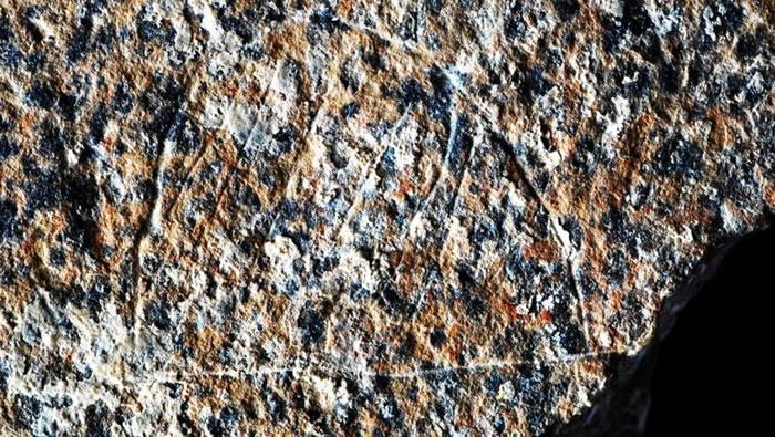 -西班牙旧石器遗址出土刻有线条图案的石头-