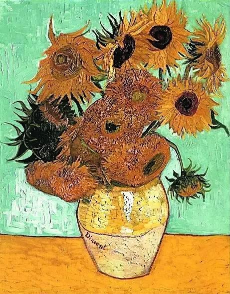 梵高的向日葵的确经典,其间蕴含的情感和力量能引起人们强烈的共鸣,它知名度之高远超过梵高作品的其它题材,以致于很多人认为梵高是画向日葵的专业户。