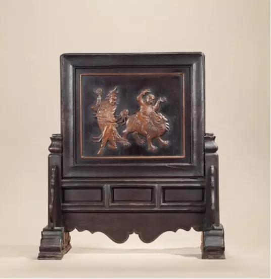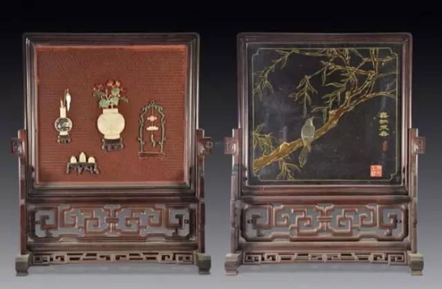 (民国红酸枝镶嵌黄杨插屏 华艺拍卖)