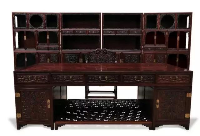 (红酸枝清式夔龙纹博古橱、书桌 静远堂)