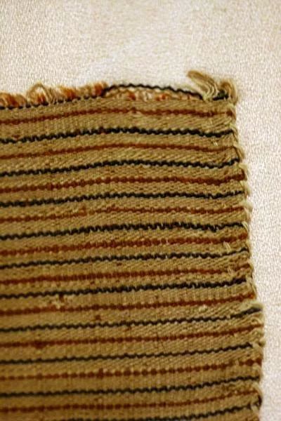 商朝毛织品出土较少,目前主要见于新疆哈密市五堡墓葬遗址,其毛织物有平纹组织(经线和纬线平行交织)和斜纹组织(经线和纬线呈一定角度交织)两种,有的还用彩色经纬线织出彩色条纹,毛织技术已发展至一定水平。