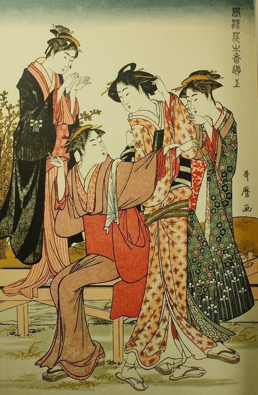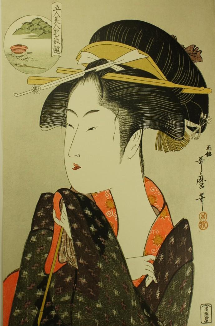 喜多川歌麿是日本浮世绘最著名的大师之一。善画美人画。20岁时,他所画的书籍封面有“北川丰章”的落款,29岁才从丰章改为歌麿。他的创作活动正值江户市民文化的全盛期,其作品成为江户市民文化中的重要组成部分。