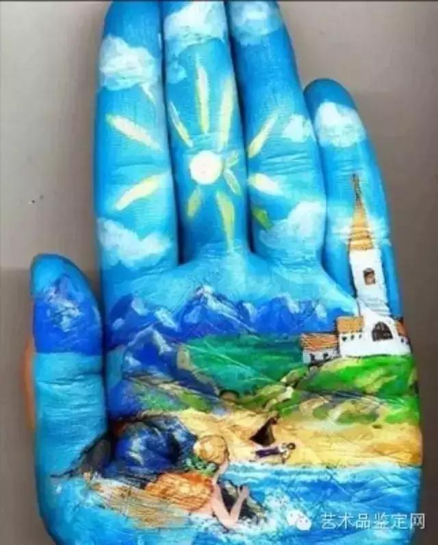 俄罗斯的一位艺术家十分热衷在手掌上作画,本来平淡无奇的画作因为手掌的纹理显得立体形象,连人物的表情都生动起来。