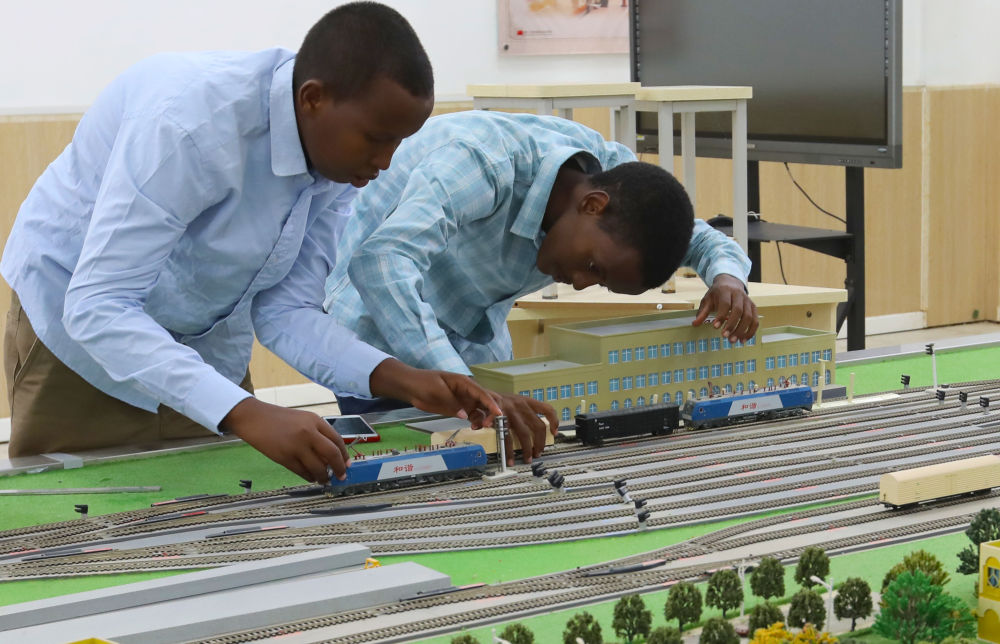 2022年9月19日,在位于吉布提首都吉布提市的吉布提工商学校,学生在鲁班工坊铁道运营沙盘教学区学习。新华社记者 董江辉/摄